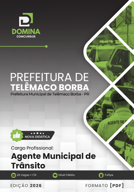 Prepare-se com o material mais completo para o Concurso Prefeitura de Telêmaco Borba - PR 2026! Nossa apostila, atualizada e alinhada ao edital, está disponível para download imediato em formato PDF.