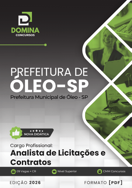 Prepare-se com o material mais completo para o Concurso Prefeitura de Óleo - SP 2026! Nossa apostila, atualizada e alinhada ao edital, está disponível para download imediato em formato PDF.