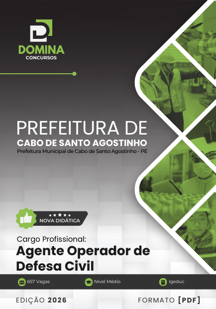 Prepare-se com o material mais completo para o Concurso Prefeitura de Cabo de Santo Agostinho - PE 2026! Nossa apostila, atualizada e alinhada ao edital, está disponível para download imediato em formato PDF. Comece seus estudos hoje mesmo!