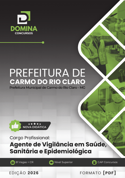 Prepare-se com o material mais completo para o Concurso Prefeitura de Carmo do Rio Claro - MG 2026! Nossa apostila, atualizada e alinhada ao edital, está disponível para download imediato em formato PDF. Comece seus estudos hoje mesmo!
