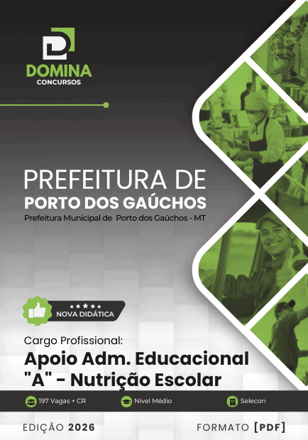 Apostila Apoio Administrativo Educacional Nutrição Escolar Porto dos Gaúchos MT 2026 Material Completo e Atualizado