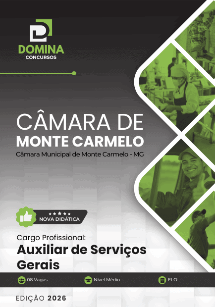Encontre materiais atualizados para diversos cargos do concurso Câmara de Monte Carmelo - MG.