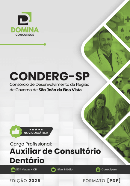 Encontre materiais atualizados para diversos cargos do concurso CONDERG Consórcio de Desenvolvimento da Região de Governo de São João da Boa Vista SP.