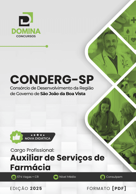 Encontre materiais atualizados para diversos cargos do concurso CONDERG Consórcio de Desenvolvimento da Região de Governo de São João da Boa Vista SP.