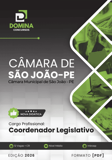 Prepare-se com o material mais completo para o Concurso Câmara de São João - PE 2025! Nossa apostila, atualizada e alinhada ao edital, está disponível para download imediato em formato PDF. Comece seus estudos hoje mesmo!