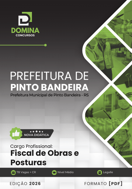 Prepare-se com o material mais completo para o Concurso Prefeitura de Pinto Bandeira - RS 2026! Nossa apostila, atualizada e alinhada ao edital, está disponível para download imediato em formato PDF. Comece seus estudos hoje mesmo!