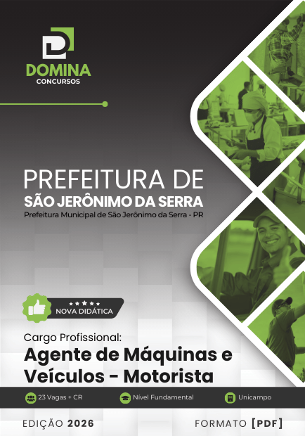 Prepare-se com o material mais completo para o Concurso Prefeitura de São Jerônimo da Serra - PR 2026! Nossa apostila, atualizada e alinhada ao edital, está disponível para download imediato em formato PDF. Comece seus estudos hoje mesmo!