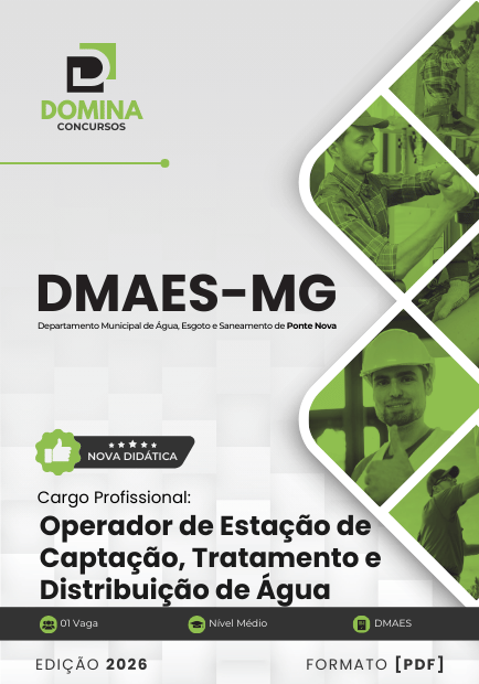 Prepare-se com o material mais completo para o Concurso DMAES Ponte Nova - MG 2026! Nossa apostila, atualizada e alinhada ao edital, está disponível para download imediato em formato PDF. Comece seus estudos hoje mesmo!