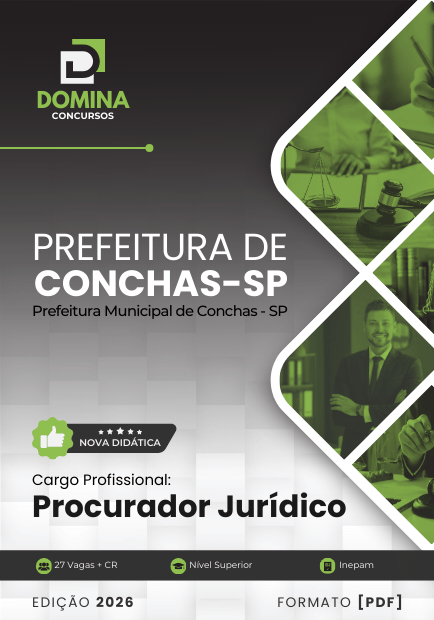Prepare-se com o material mais completo para o Concurso Prefeitura de Conchas - SP 2026! Nossa apostila, atualizada e alinhada ao edital, está disponível para download imediato em formato PDF. Comece seus estudos hoje mesmo!