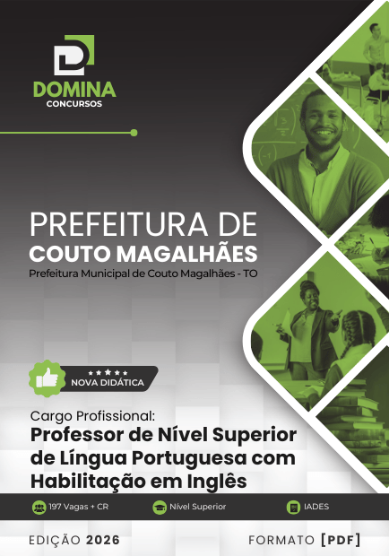 Prepare-se com o material mais completo para o Concurso Prefeitura de Couto Magalhães - TO 2026! Nossa apostila, atualizada e alinhada ao edital, está disponível para download imediato em formato PDF. Comece seus estudos hoje mesmo!