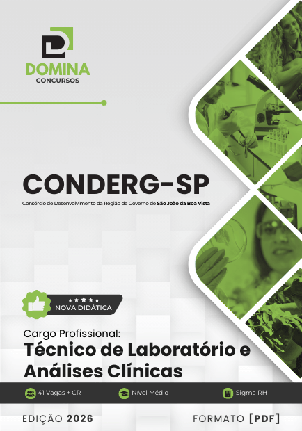 Prepare-se com o material mais completo para o Concurso CONDERG - São João da Boa Vista SP 2026! Nossa apostila, atualizada e alinhada ao edital, está disponível para download imediato em formato PDF. Comece seus estudos hoje mesmo!