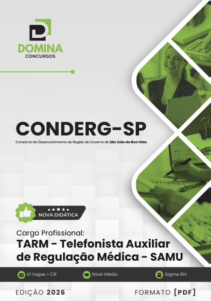 Encontre materiais atualizados para diversos cargos do concurso CONDERG - São João da Boa Vista SP.