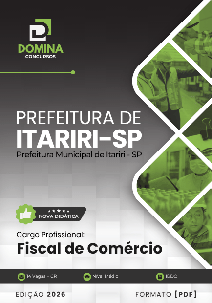 Prepare-se com o material mais completo para o Concurso Prefeitura de Itariri - SP 2026! Nossa apostila, atualizada e alinhada ao edital, está disponível para download imediato em formato PDF.