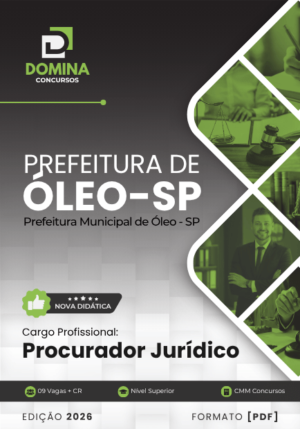Prepare-se com o material mais completo para o Concurso Prefeitura de Óleo - SP 2026! Nossa apostila, atualizada e alinhada ao edital, está disponível para download imediato em formato PDF.