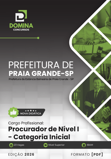 Prepare-se com o material mais completo para o Concurso Prefeitura de Praia Grande - SP 2026! Nossa apostila, atualizada e alinhada ao edital, está disponível para download imediato em formato PDF.