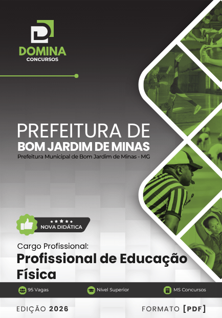 Prepare-se com o material mais completo para o Concurso Prefeitura de Bom Jardim de Minas - MG 2026! Nossa apostila, atualizada e alinhada ao edital, está disponível para download imediato em formato PDF.